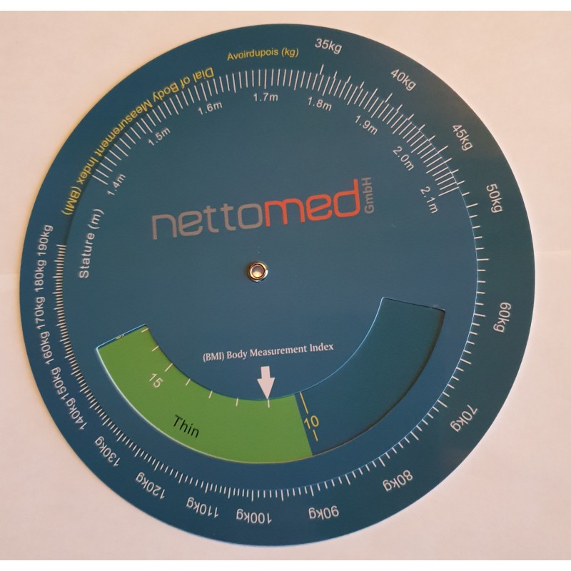 Le disque de calcul de l'IMC permet de déterminer cette valeur avec précision, en fonction de la taille et du poids du patient.