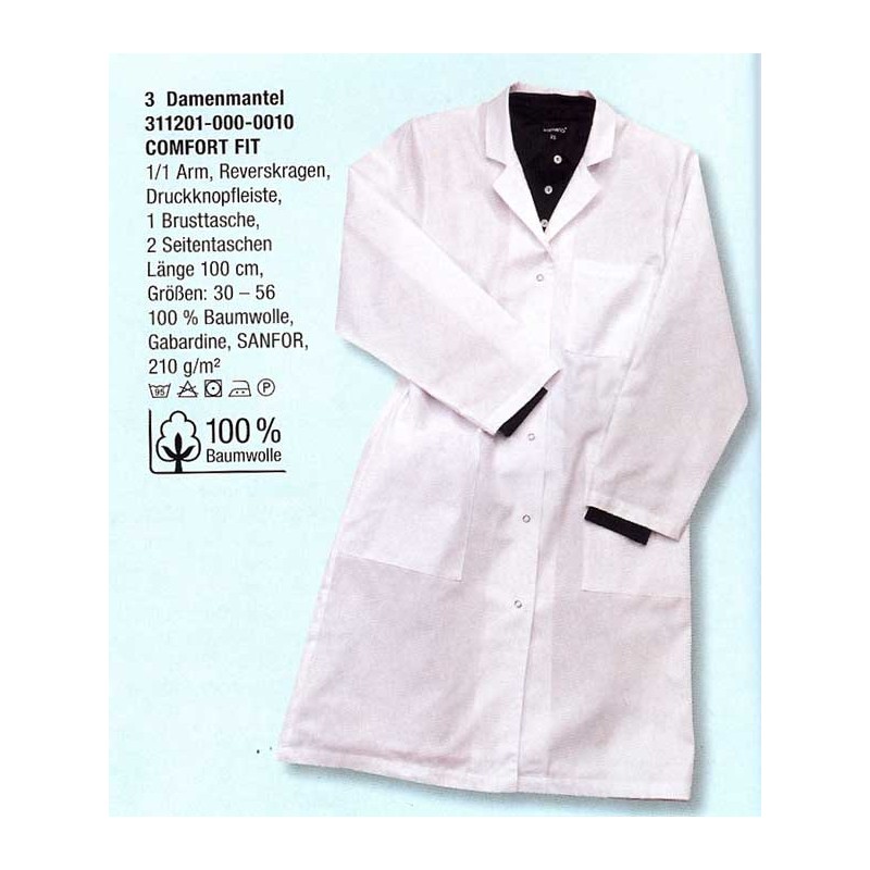 Cols de reversLavable à l'eau bouillantePanneau de boutonnière2 poches latéralesblanclongueur : 100 cmTaille : 34